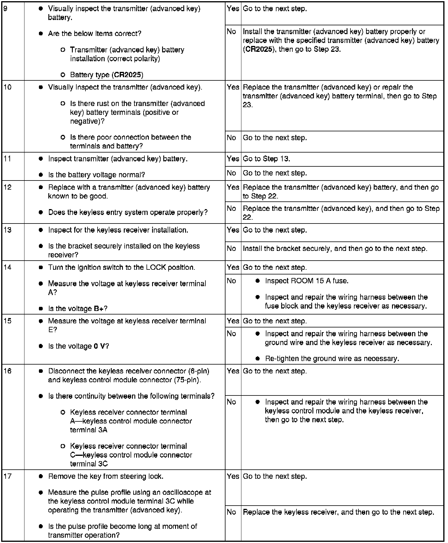 No.1 Door Cannot Be Locked/Unlocked By Transmitter (Advanced Key) - Advanced Keyless Entry and Start System