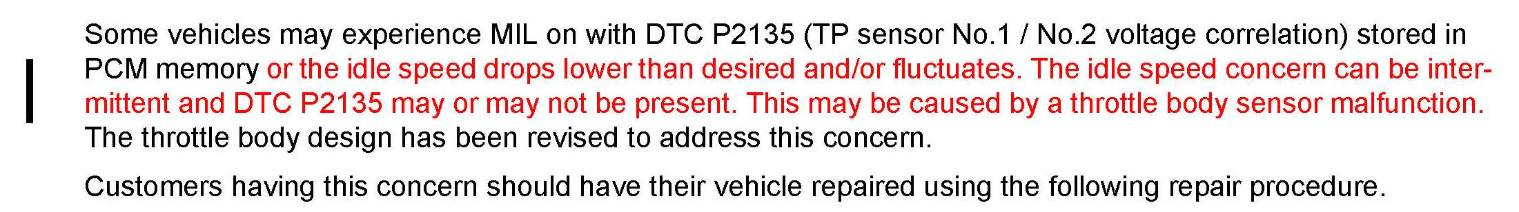 MIL ON WITH DTC P2135 AND/OR IDLE FLUCTUATION