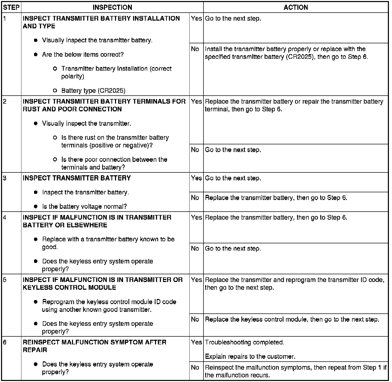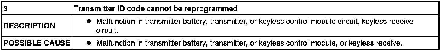 NO.3 TRANSMITTER ID CODE CANNOT BE REPROGRAMMED [KEYLESS ENTRY SYSTEM]