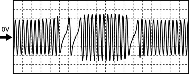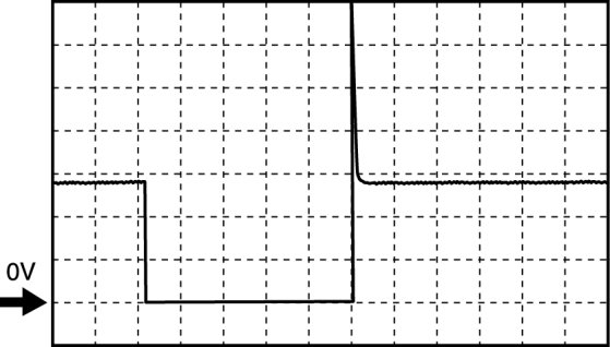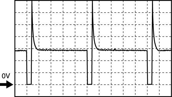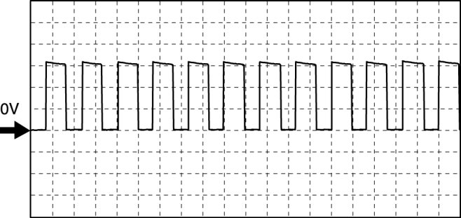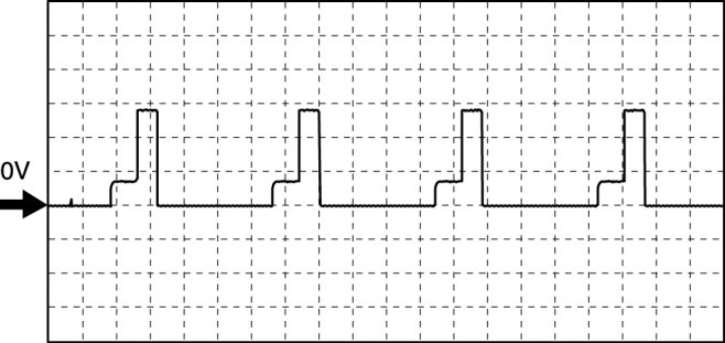 - Oscilloscope setting: 5 V/DIV (Y): 0.4 ms/DIV (X), DC range