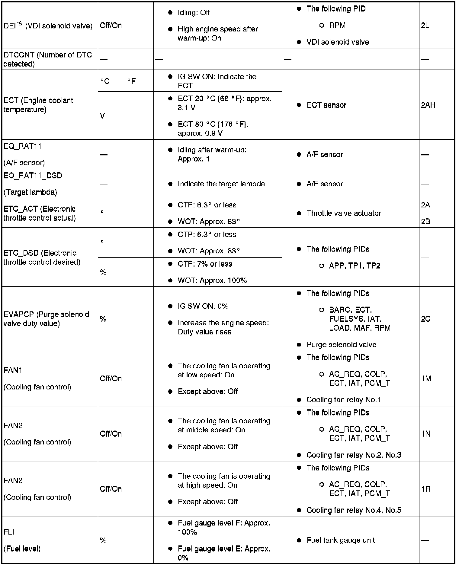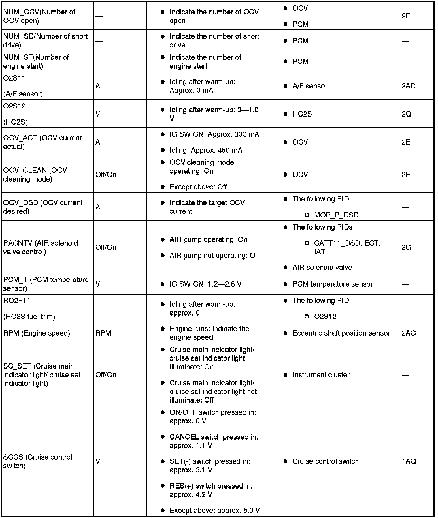 PID/Data Monitor Table Reference (Part 5):
