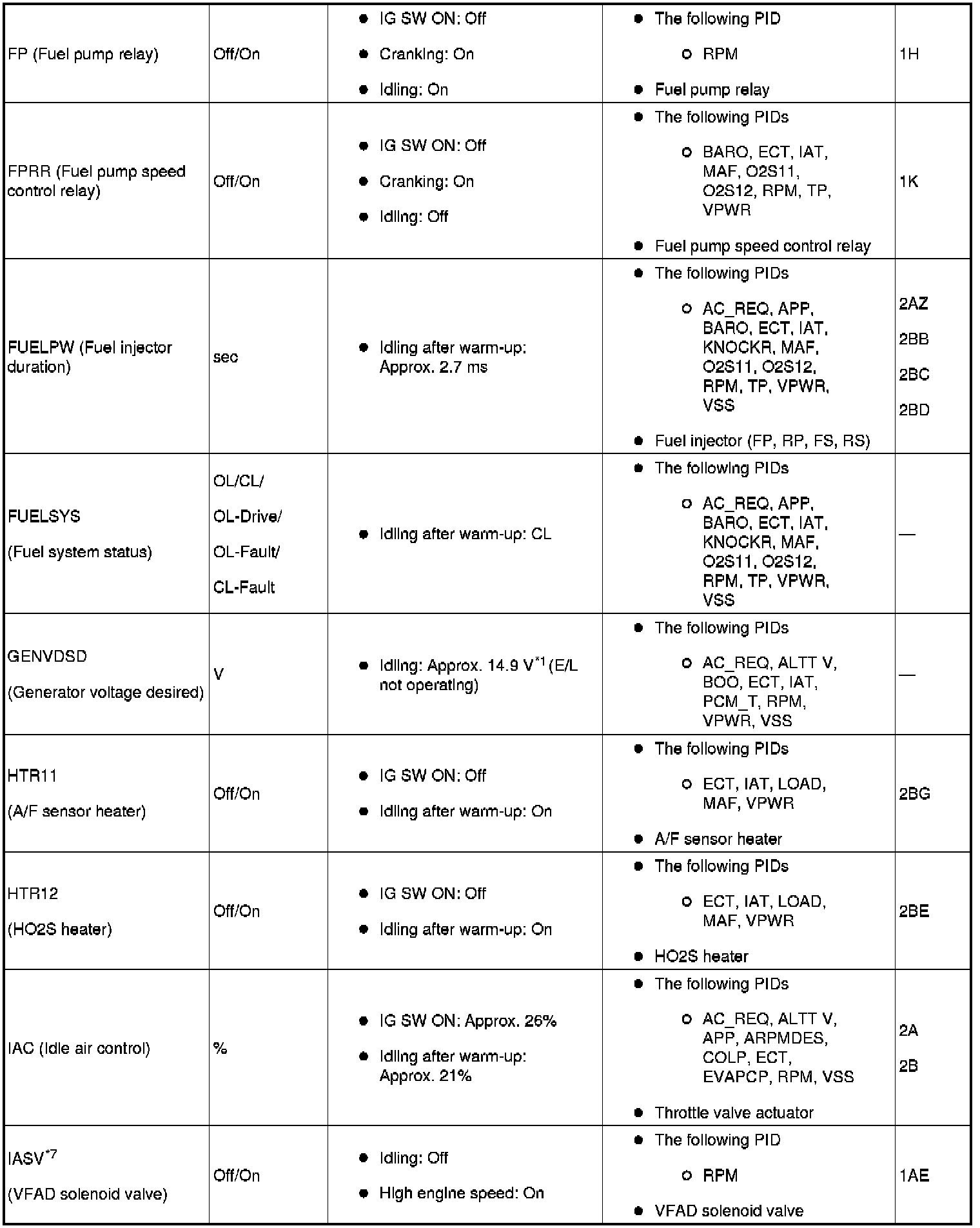 PID/Data Monitor Table Reference (Part 7):