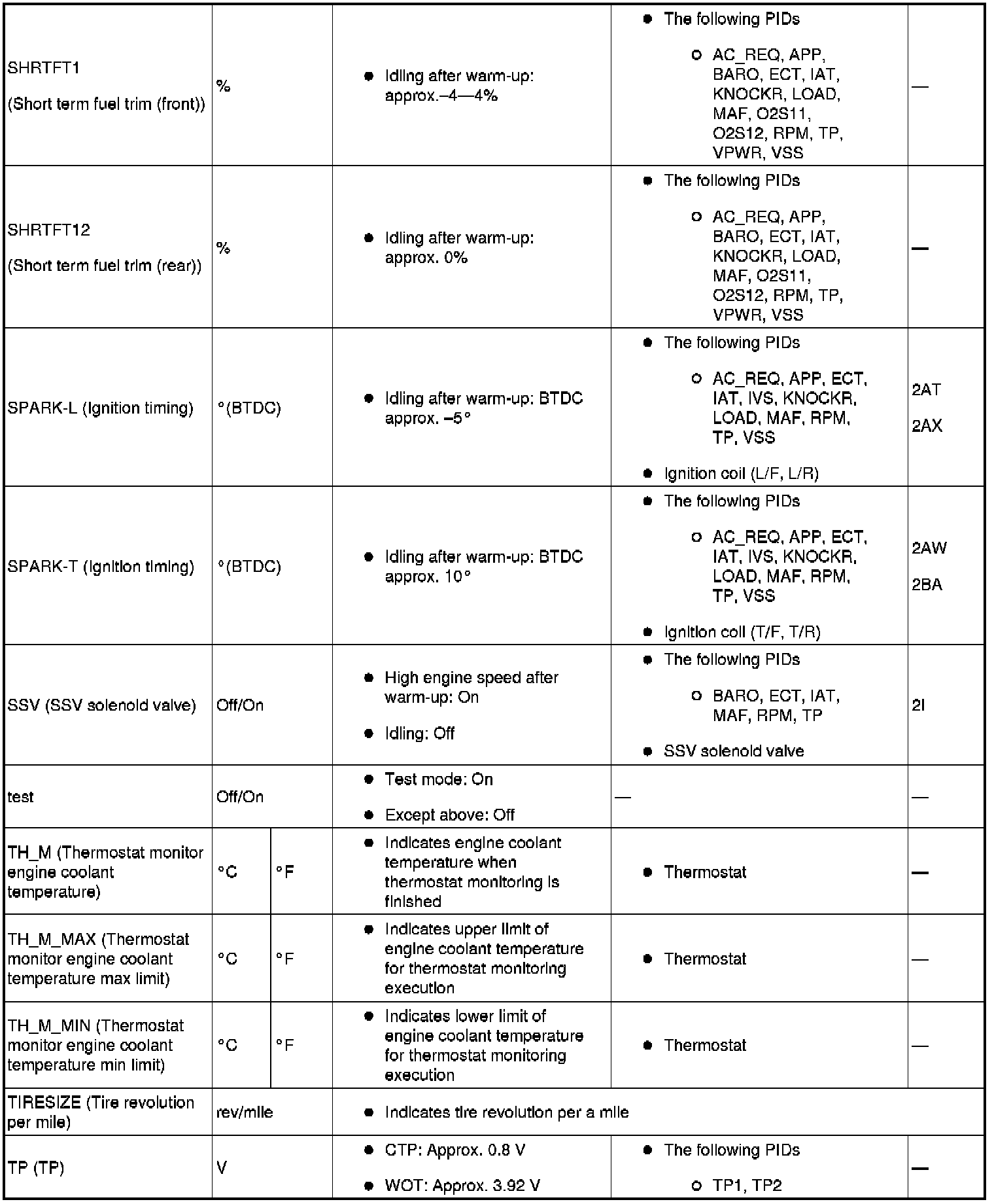 PID/Data Monitor Table Reference (Part 2):