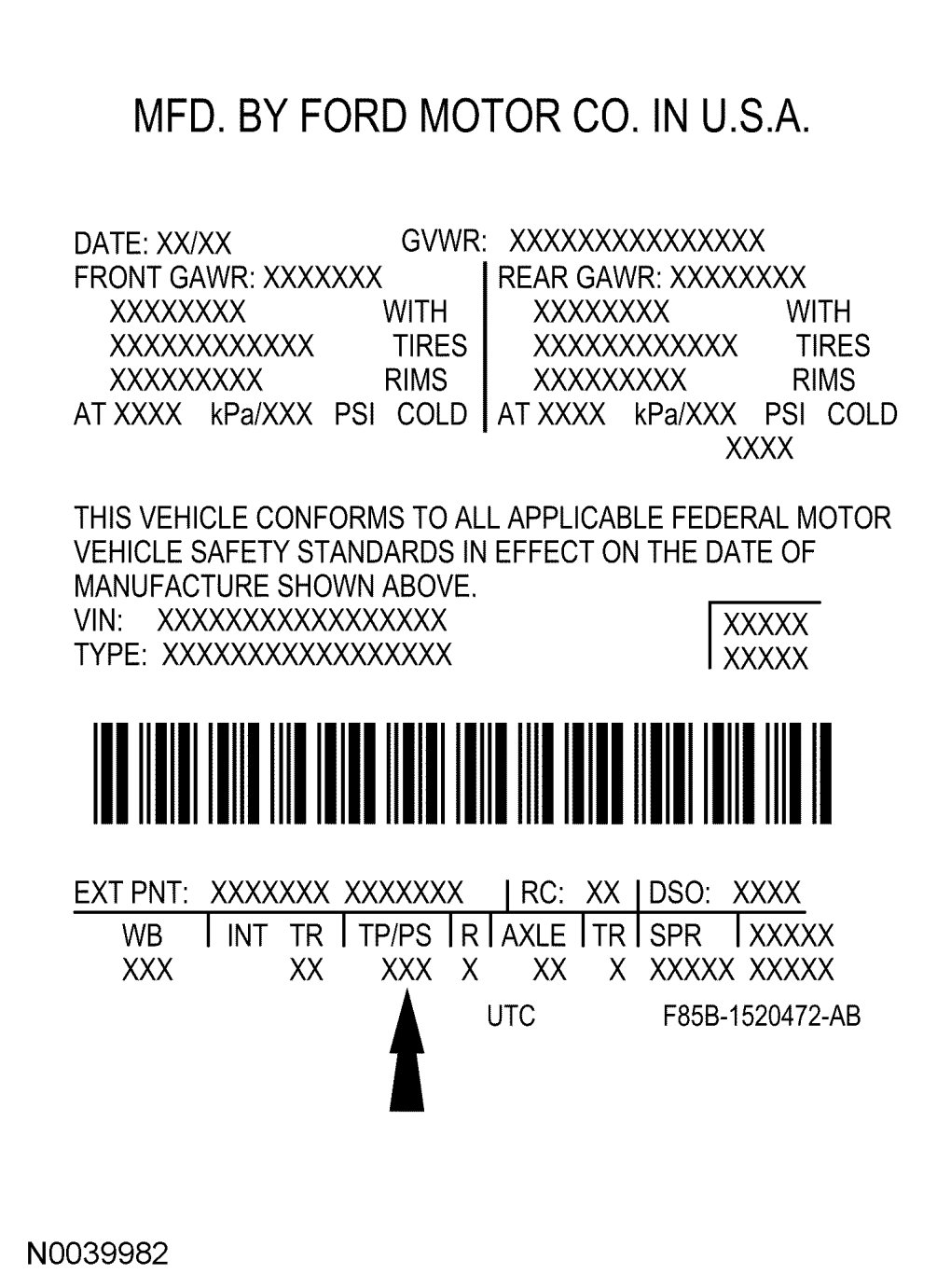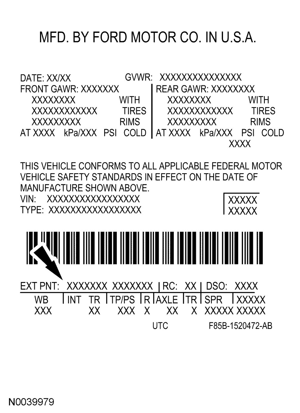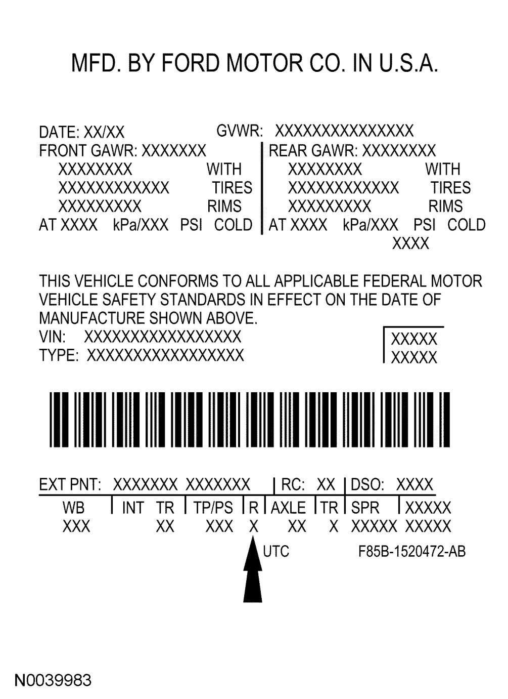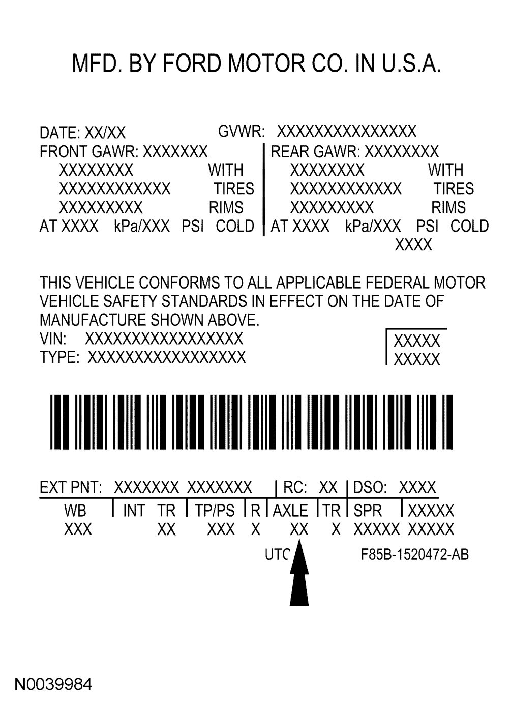 The upper portion of the Vehicle Certification (VC) label contains the manufacturer's name, the month and year of manufacture, the certification statement and the VIN. It also includes Gross Vehicle Weight Rating (GVWR). The VC label is located on the left-hand door jamb. The serial number can also be found on the engine block, transmission and frame.If a vehicle requires replacement of the VC label and is 4 years old or less, an authorized dealer must submit the VIN to their respective regional office. The regional office will submit a web form to the assembly plant for the replacement label. Once the label has been printed, a representative from the regional office will deliver the label to the dealer and witness installation on the vehicle. If a vehicle is more than 4 years old and requires a replacement label, the dealer must submit a request to the Department of Motor Vehicles.