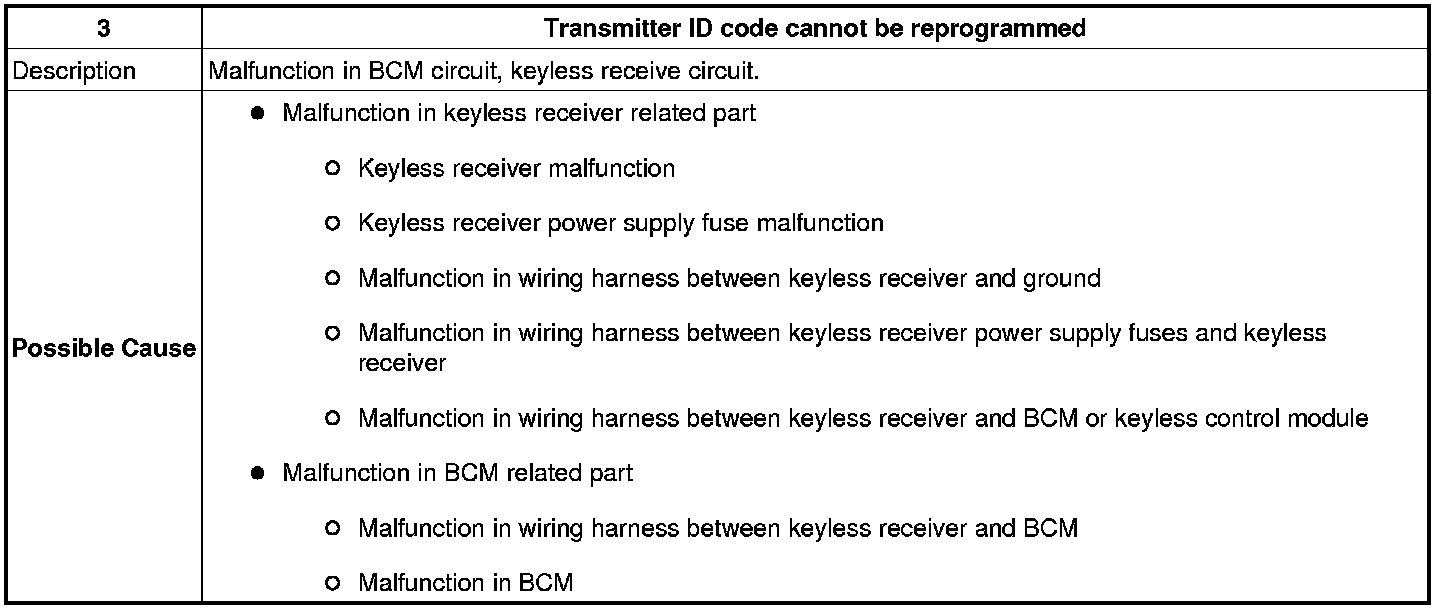 TRANSMITTER ID CODE CANNOT BE REPROGRAMMED [KEYLESS ENTRY SYSTEM]