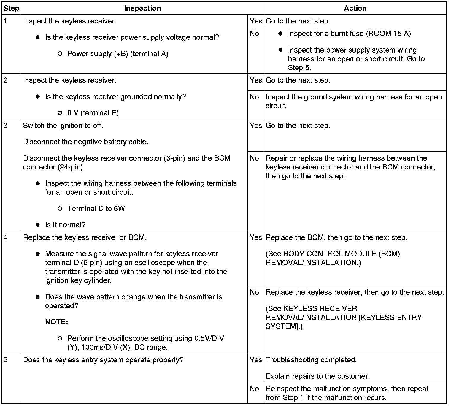 Keyless Entry Module: Testing and Inspection
