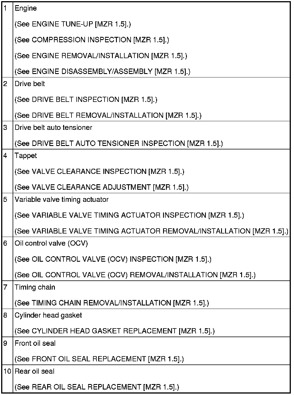 ENGINE LOCATION INDEX [MZR 1.5]