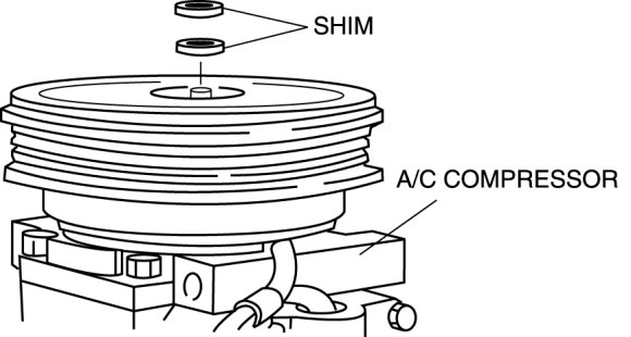 1. Measure the clearance around the entire circumference between the pressure plate and A/C compressor pulley using a thickness gauge.