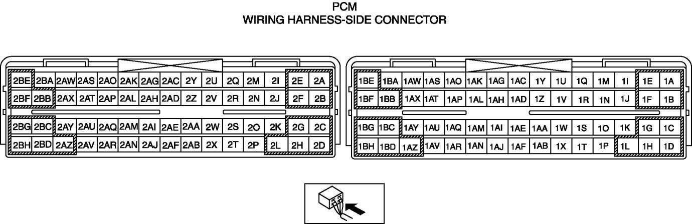 - Ignition coil No.1: 2AQ (+)-Negative battery terminal (-)