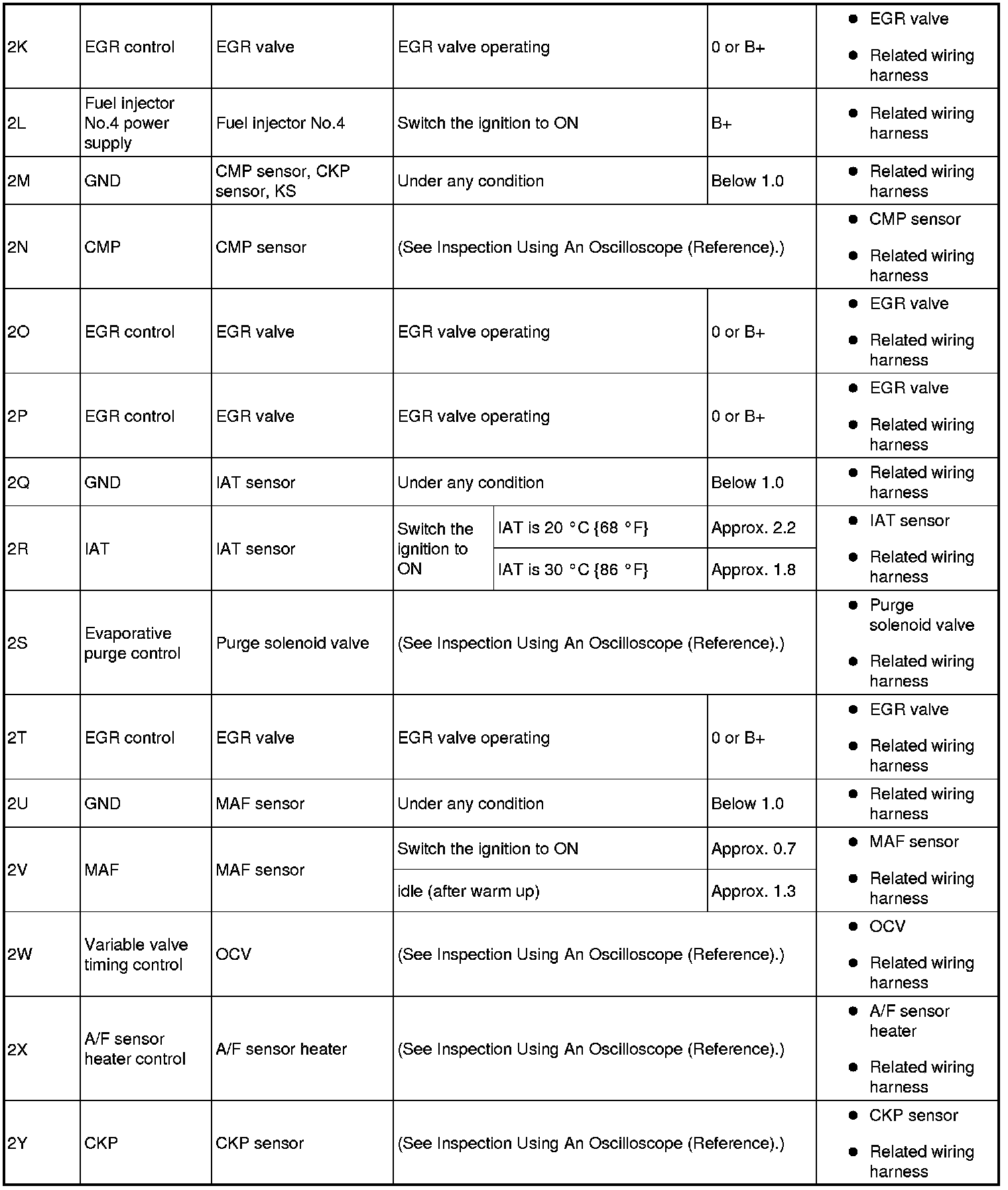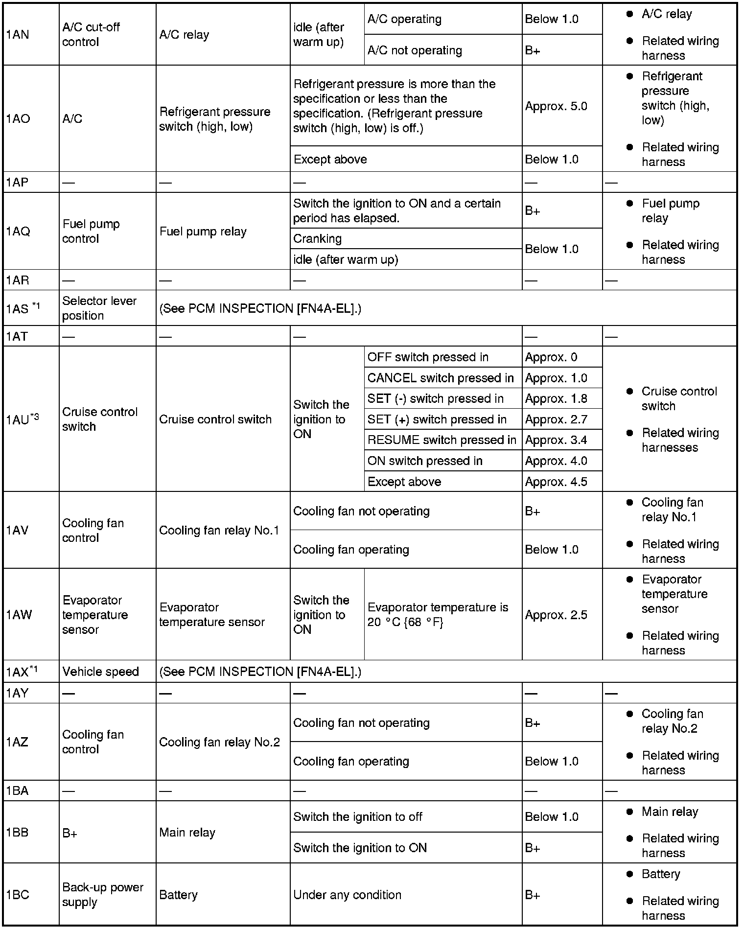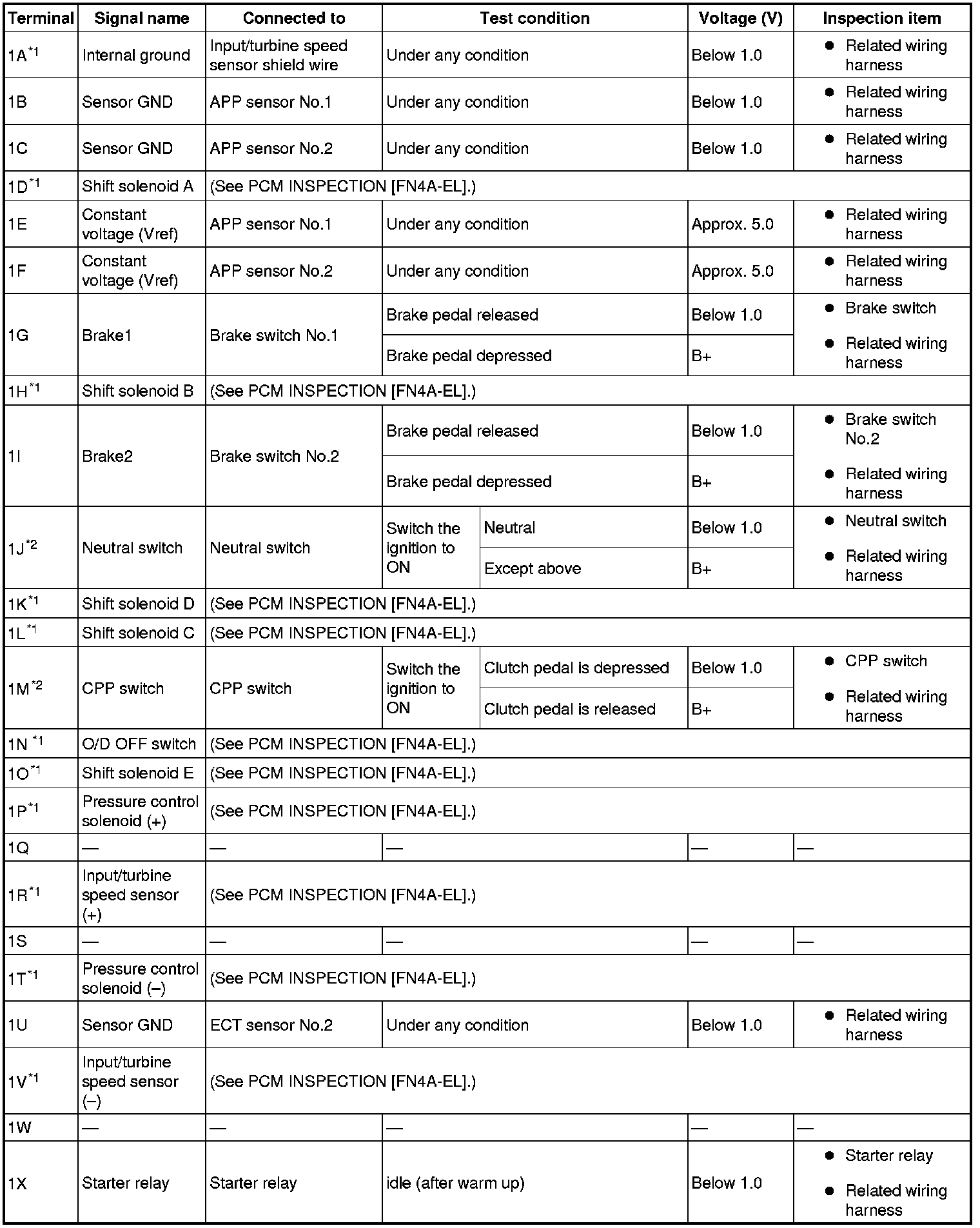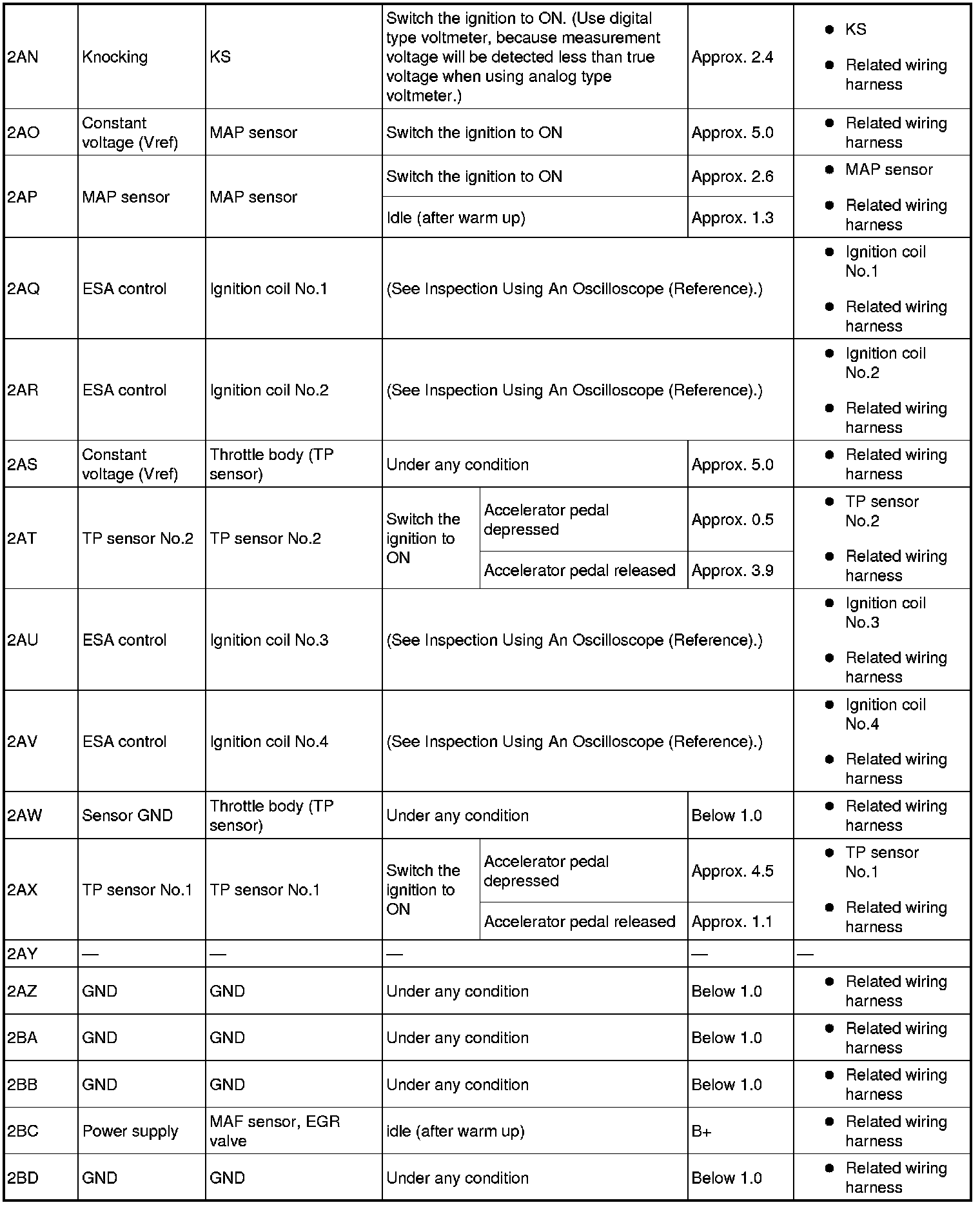 - The PCM terminal voltages vary with change in measuring conditions and vehicle conditions. Always carry out a total inspection of the input systems, output systems, and PCM to determine the cause of trouble. Otherwise, a wrong diagnosis will be made.