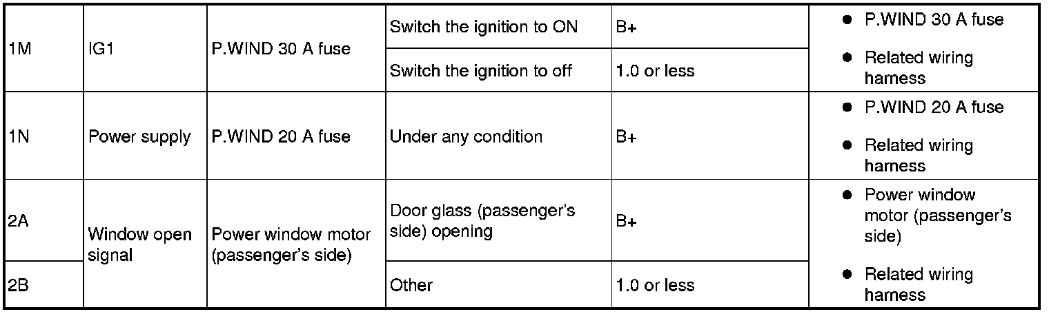 Home >> Mazda >> 2011 >> 2 L4-1.5L >> Repair and Diagnosis >> Windows and Glass >> Windows >> Power Window Switch >> Testing and Inspection >> Power Window Main Switch Inspection