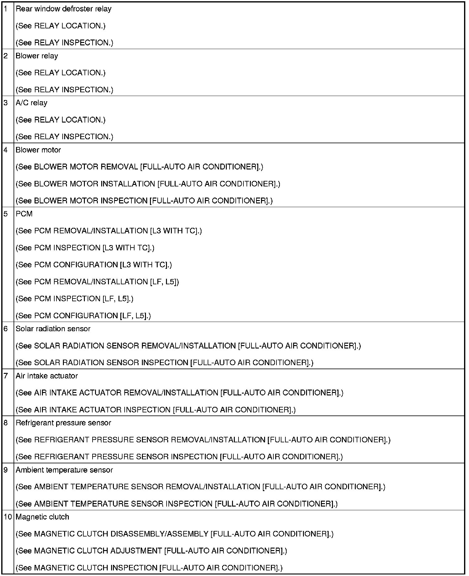 HVAC CONTROL SYSTEM LOCATION INDEX [FULL-AUTO AIR CONDITIONER]