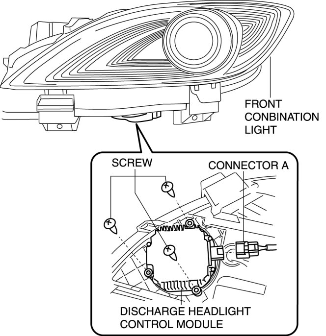Home >> Mazda >> 2011 >> 3 L4-2.5L >> Repair and Diagnosis >> Lighting and Horns >> Headlamp >> Headlamp Control Module >> Service and Repair >> Discharge Headlight Control Module Removal/Installation