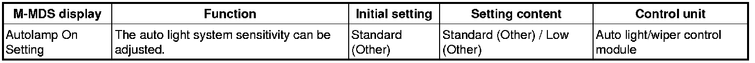 - For the room light control system and turn light system, refer to the control system personalization features setting. Control System Personalization Features Setting Procedure
