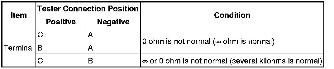 5. Measure the resistance between each terminal on the ignition coil connector using an analog circuit tester.