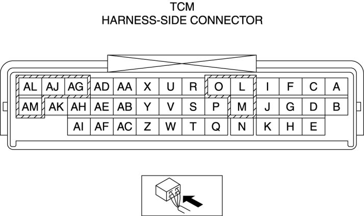 - If any incorrect voltage is detected, inspect the related system(s), wiring harnesses and connector(s) referring to the "Inspection Item" column in the "TCM Terminal Voltage".