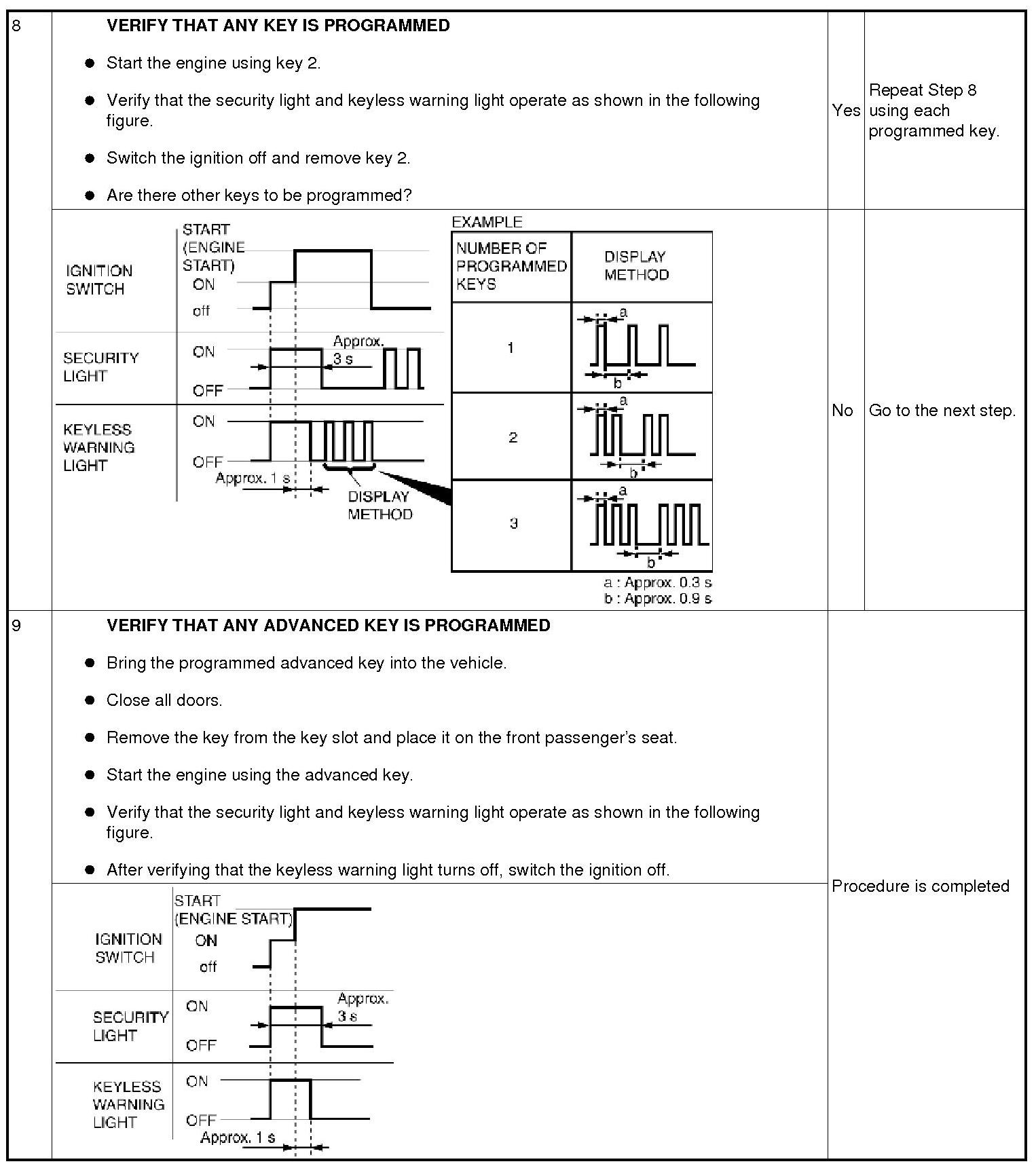 - Have one or more advanced keys to be programmed after the replacement.