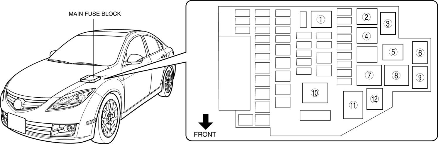 Main Relay (Computer/Fuel System): Locations