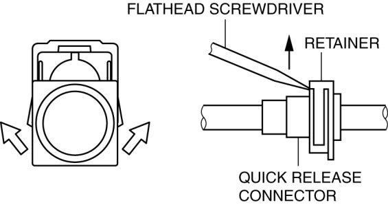 - The quick release connector can be removed by pushing the center of the retainer tabs.
