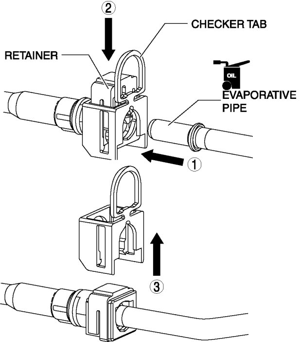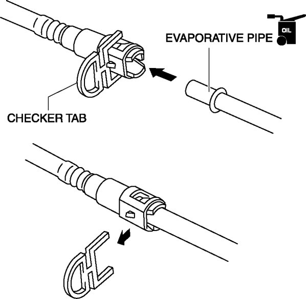 - A checker tab is integrated with the quick release connector for new evaporative hoses. Remove the checker tab from the quick release connector after the connector is completely engaged with the evaporative pipe.