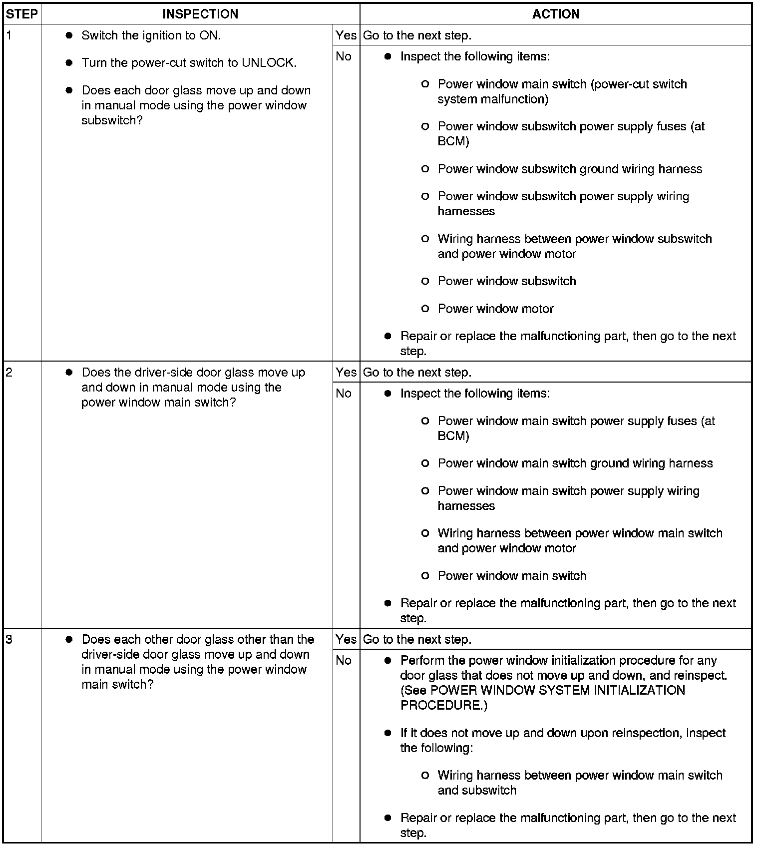 BASIC POWER WINDOW SYSTEM INSPECTION [POWER WINDOW SYSTEMS (AUTO-OPEN/CLOSE FUNCTION)]