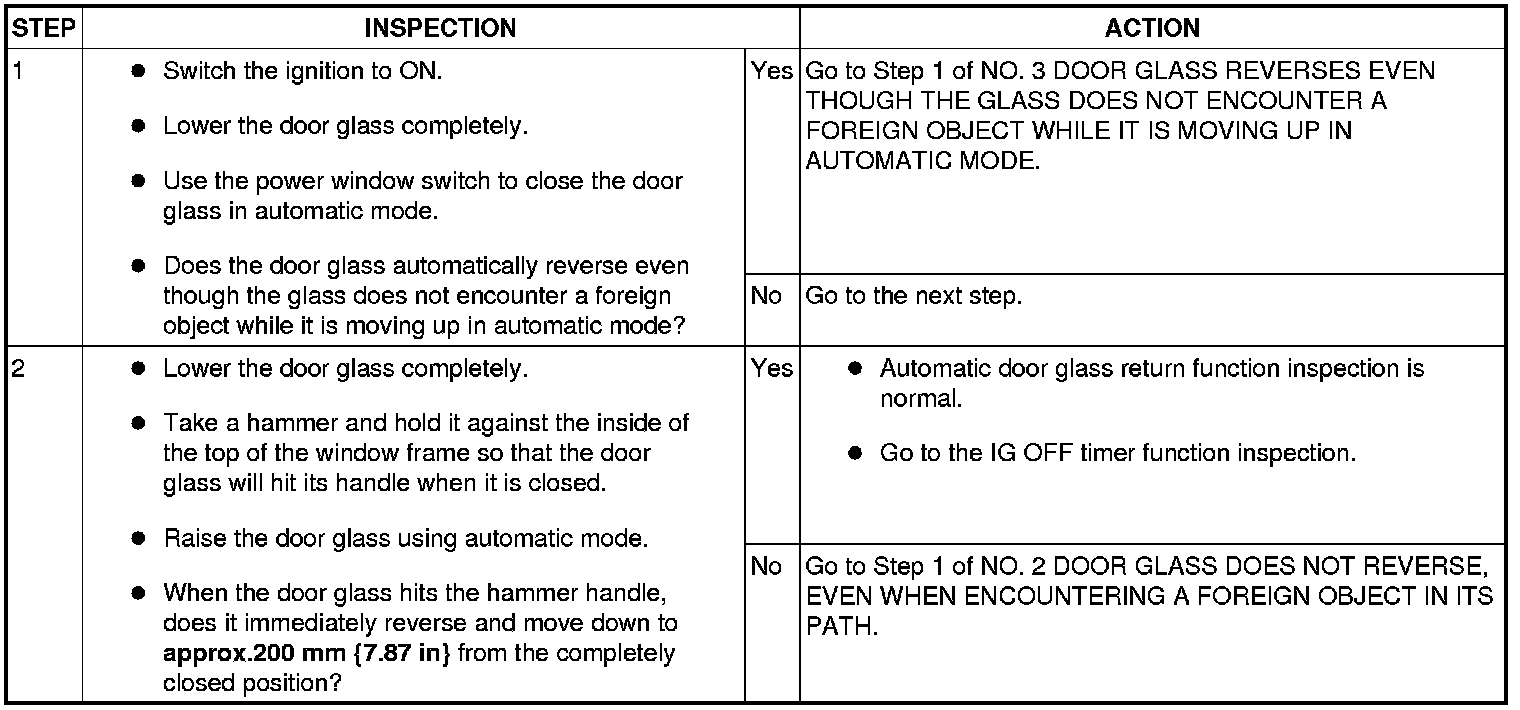 - With the switch held at auto-up, the door glass does not automatically reverse even when a foreign object is encountered.