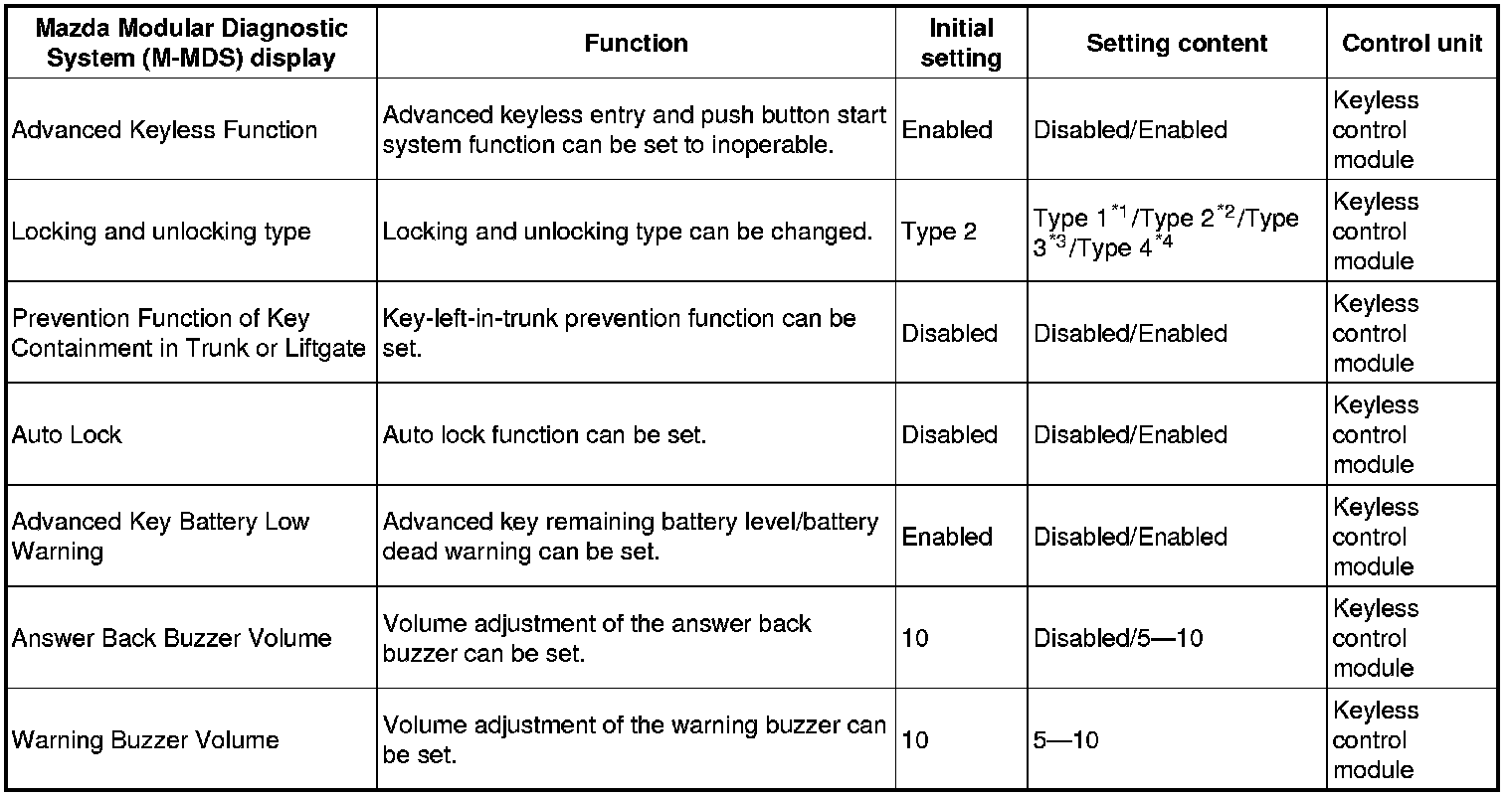 Home >> Mazda >> 2011 >> 6 V6-3.7L >> Repair and Diagnosis >> Body and Frame >> Locks >> Keyless Entry >> Testing and Inspection >> Programming and Relearning >> Personalization Features Setting Procedure