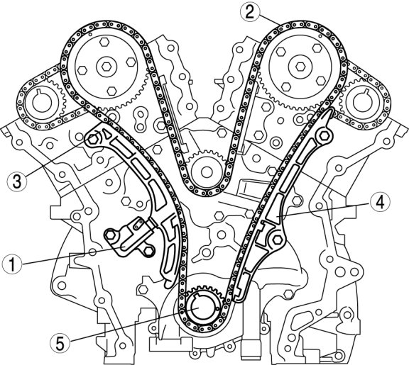 - When the timing chain is replaced with a new one, mark the new timing chain at the same positions as the removed timing chain.