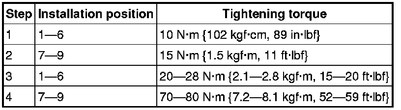 Tighten to 10 Nm {102 kgf-cm, 89 in-lbf}.