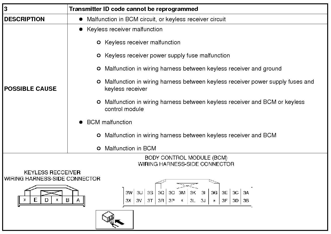 NO.3 TRANSMITTER ID CODE CANNOT BE REPROGRAMMED [KEYLESS ENTRY SYSTEM]
