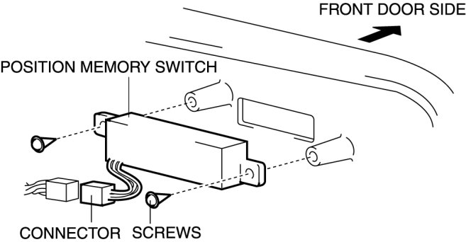 6. Remove the connector and the screws, then remove the position memory switch.