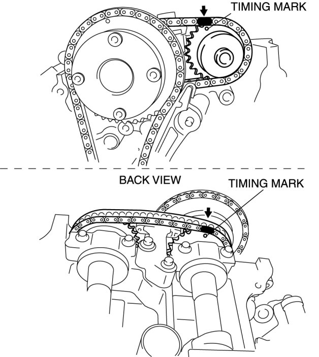 3. Place alignment marks on the timing chain corresponding to each of the alignment marks on the timing sprocket.