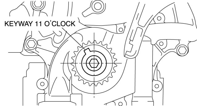 Verify that the crankshaft keyway is at 11 o'clock position.