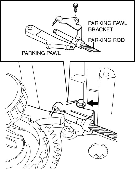 - When installing the pawl return spring to transaxle case, install the parking pawl side of the spring, then install the parking pawl shaft.