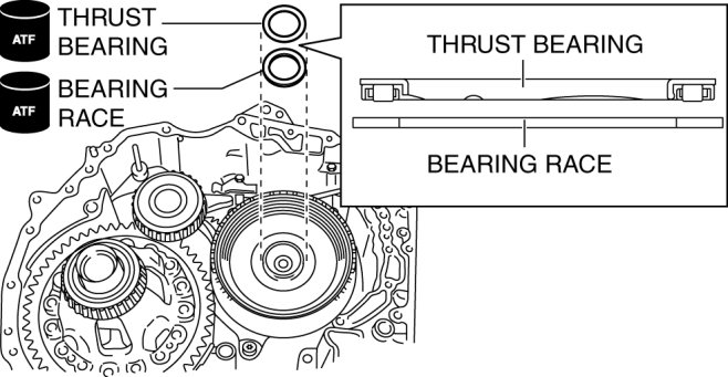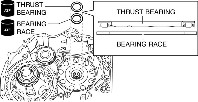 72. Install the bearing race and thrust bearing to the transaxle case as shown in the figure.