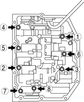 88. Install the TFT sensor with the lock plate and a bolt to the control valve body component as shown in the figure.
