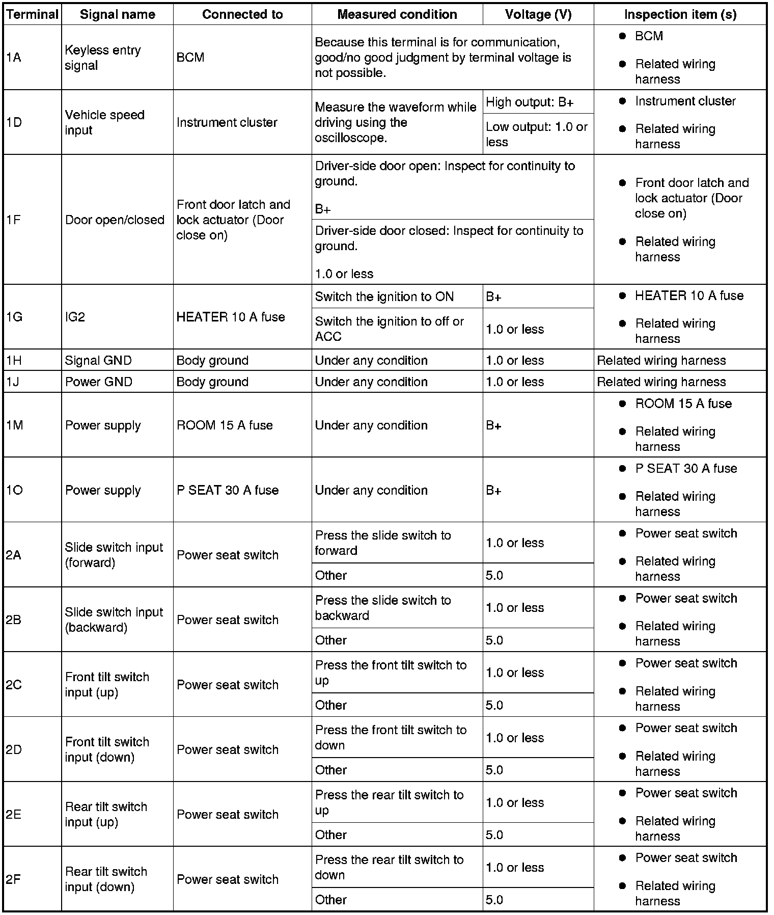 Home >> Mazda >> 2011 >> Mazdaspeed3 L4-2.3L Turbo >> Repair and Diagnosis >> Body and Frame >> Seats >> Power Seat Control Module >> Testing and Inspection