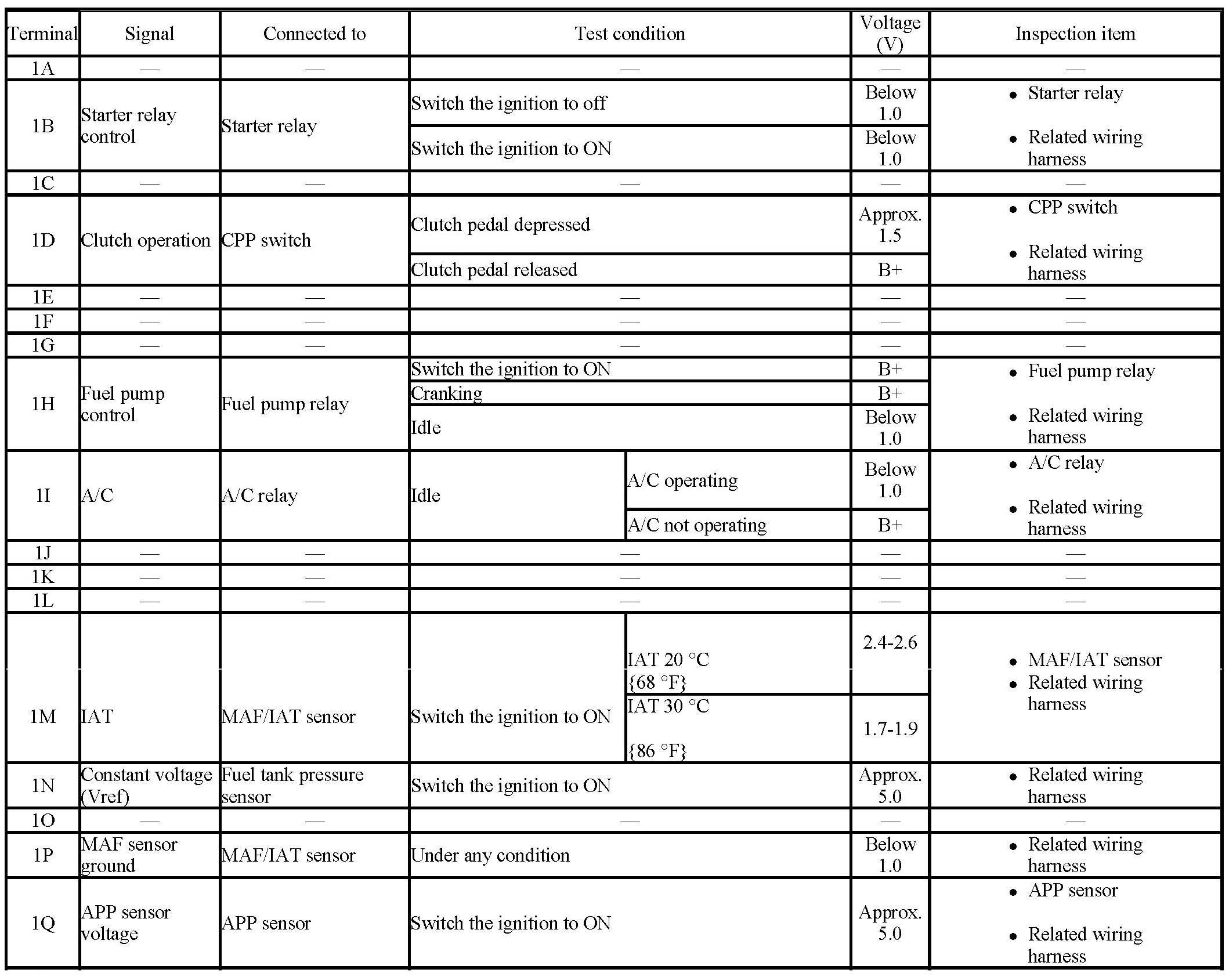 - The PCM terminal voltage can vary with the conditions when measuring and changes due to aged deterioration on the vehicle, causing false diagnosis. Therefore determine comprehensively where the malfunction occurs among the input systems, output systems, and the PCM.