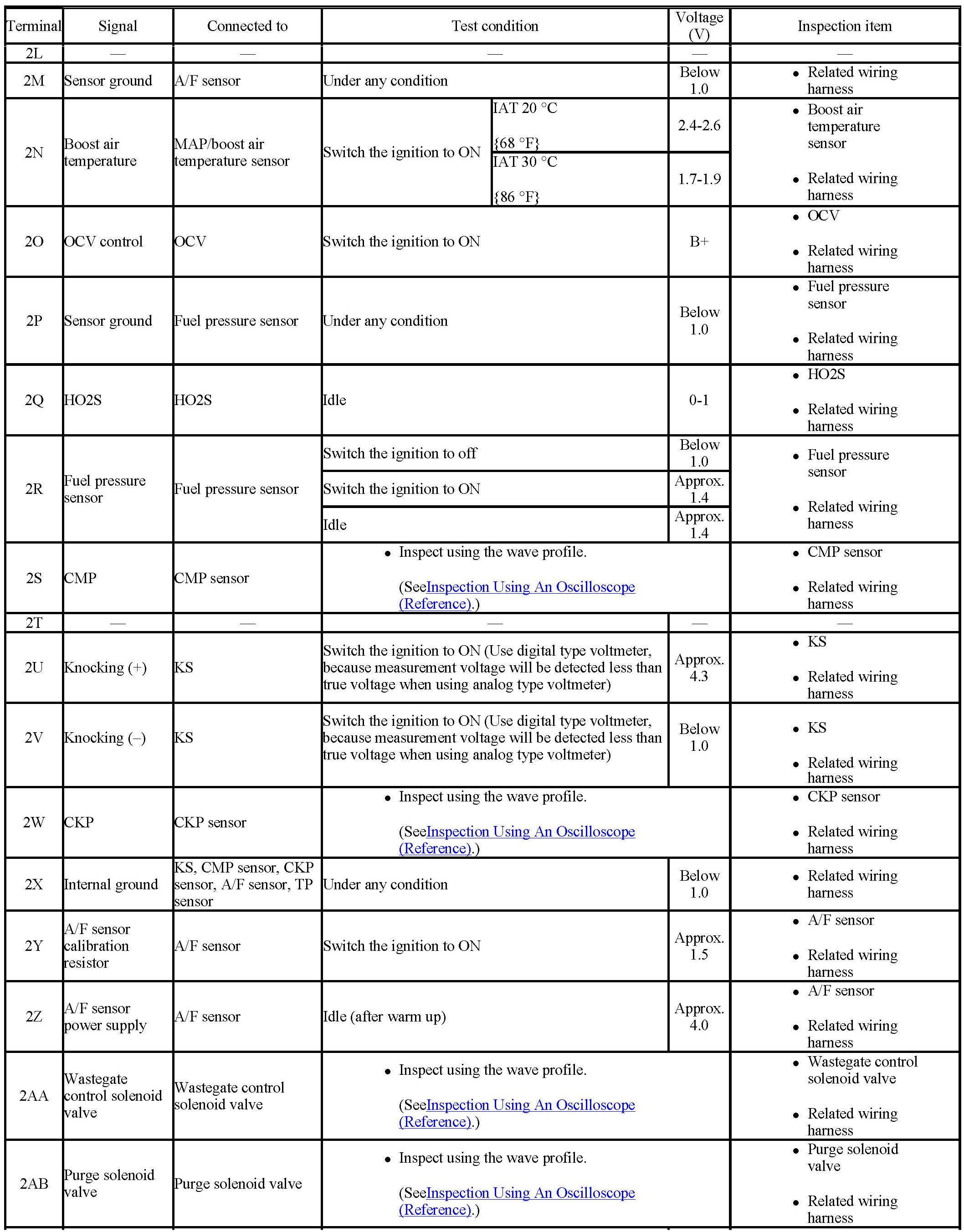 - CMP sensor (See CAMSHAFT POSITION (CMP) SENSOR INSPECTION [L3 WITH TC].)