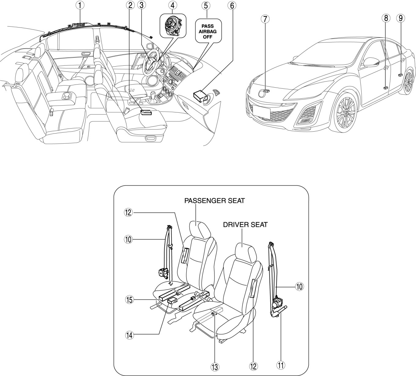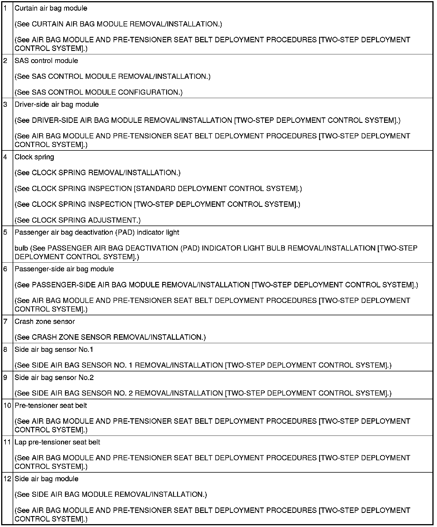 AIR BAG SYSTEM LOCATION INDEX [TWO-STEP DEPLOYMENT CONTROL SYSTEM]