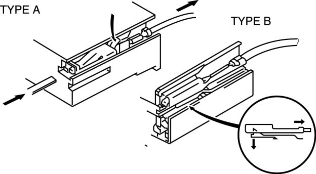 - Use the appropriate tools to remove a terminal as shown. When installing a terminal, be sure to insert it until it locks securely.