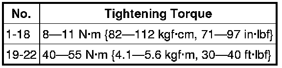 Tighten the engine front cover installation bolts in the order as shown in the figure.