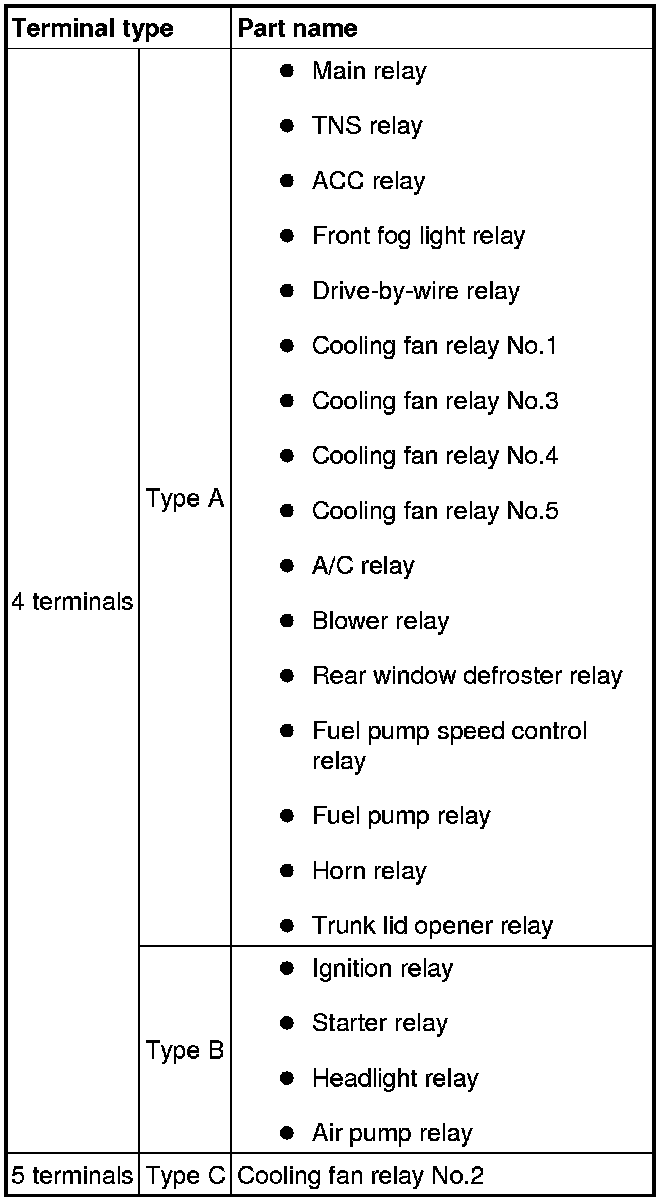 - If not as indicated in the table, replace the relay.