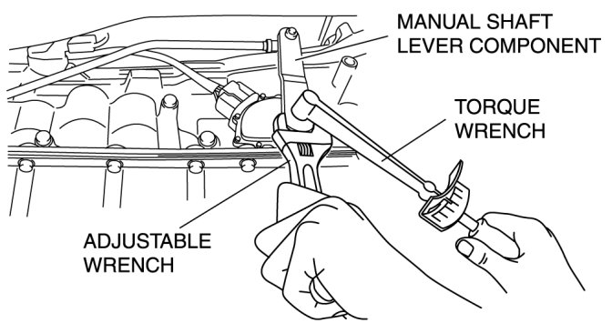 - Do not use an impact wrench. Hold the manual shaft lever when tightening the manual shaft nut, otherwise the transmission may be damaged.