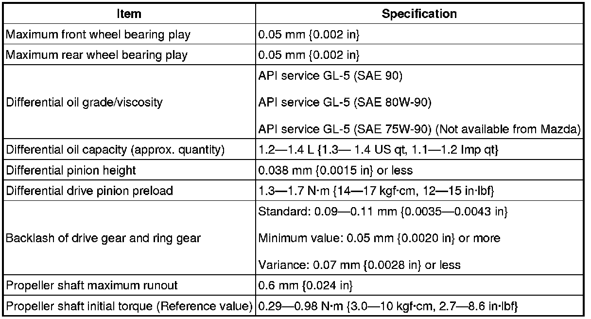 DRIVELINE/AXLE TECHNICAL DATA