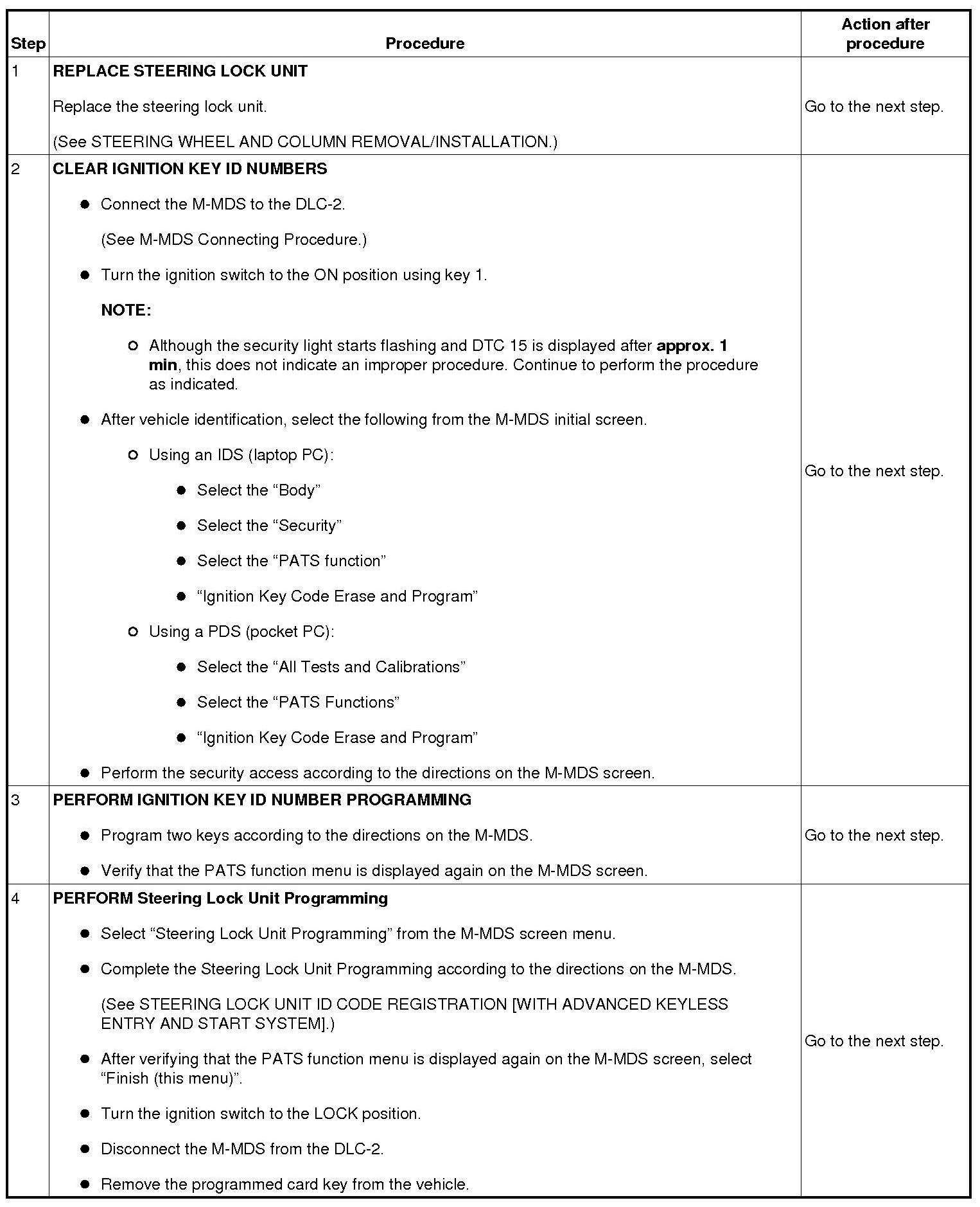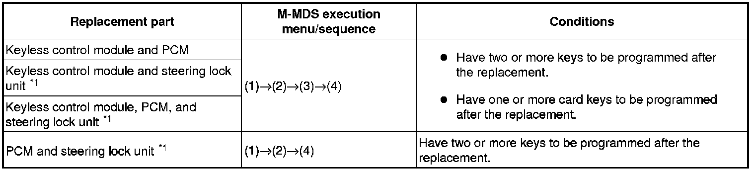 No.7 Programming Procedure Due to Simultaneous Replacement of Immobilizer System-related Parts (PCM, Keyless Control Module, and Steering Lock Unit)
