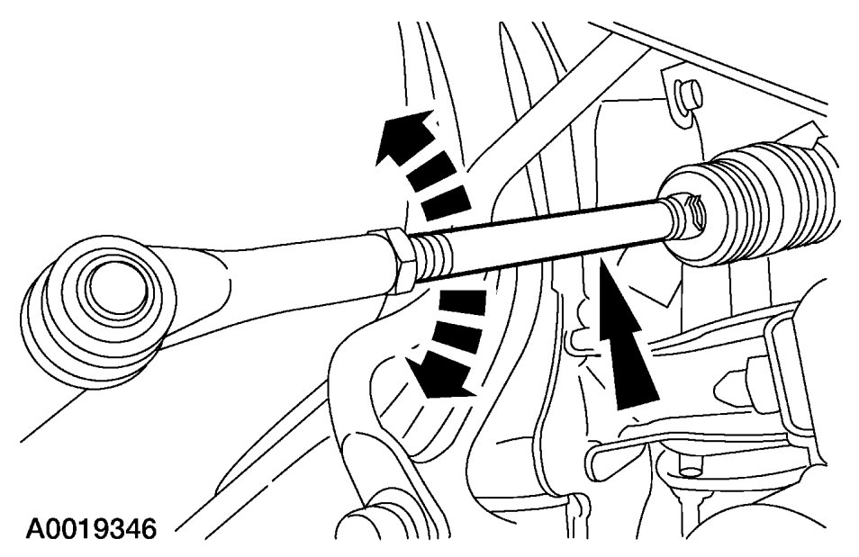NOTE:Do not allow the steering gear bellows to twist when the front wheel spindle tie-rod is rotated.