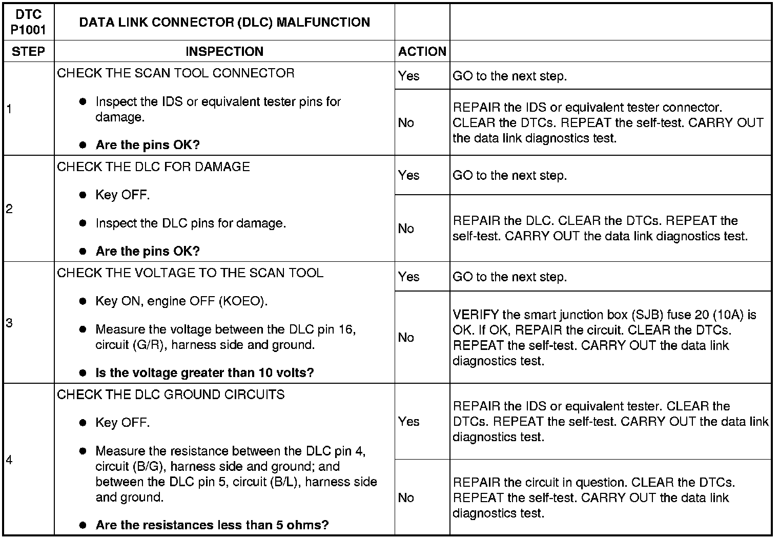 DATA LINK CONNECTOR (DLC) MALFUNCTION