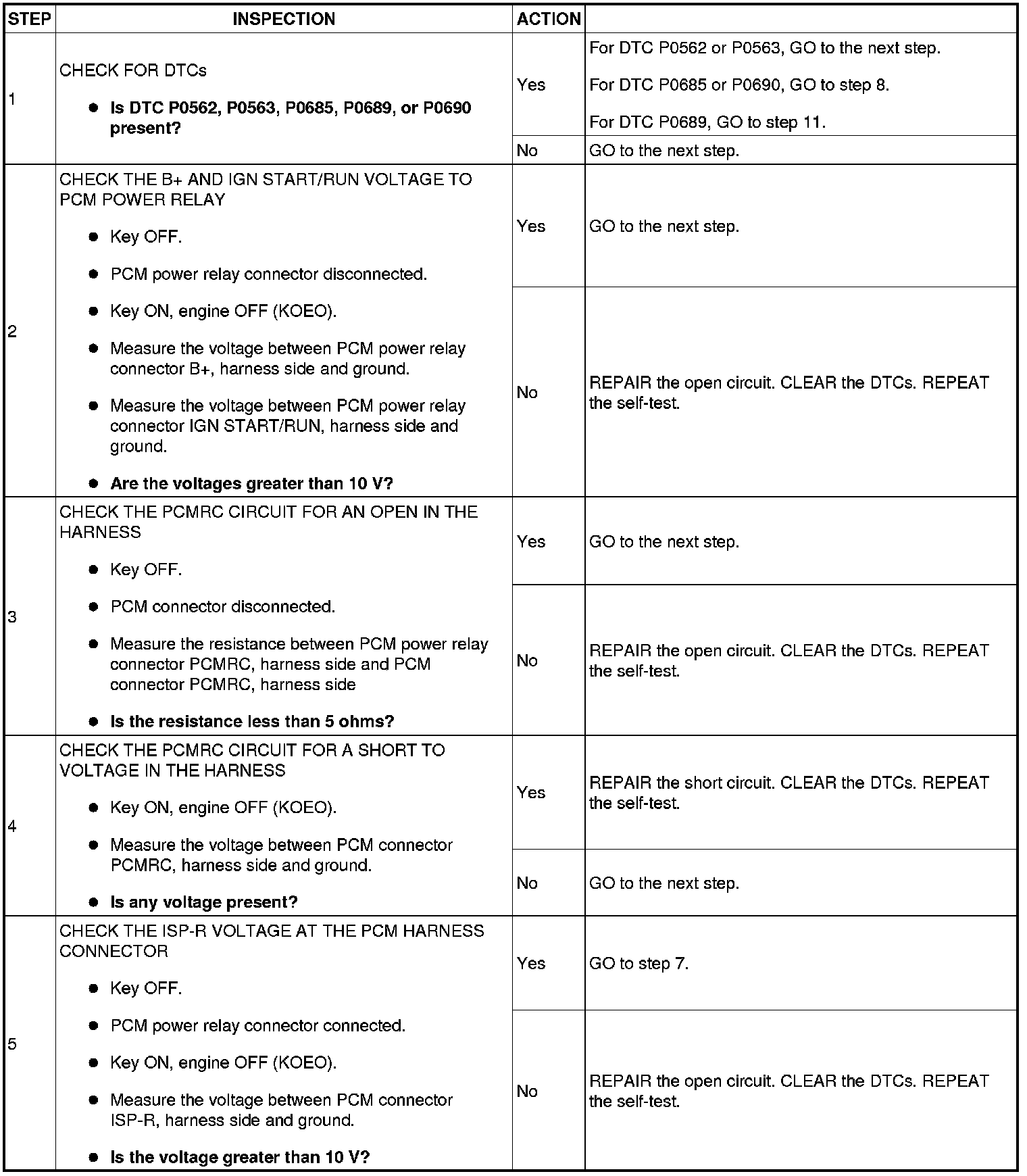 Main Relay (Computer/Fuel System): Testing and Inspection