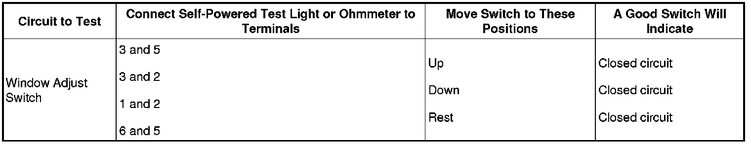 2. Inspect for continuity between the window control switch terminals using a self-powered test light or an ohmmeter.